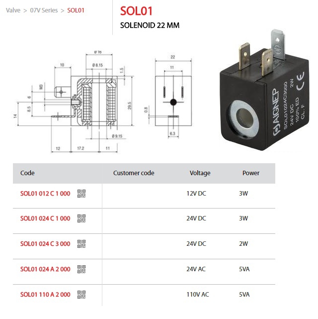 cívka pneu ASA12 012 00 DC 12V 3W |
