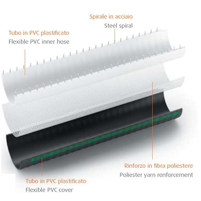 | Kód | Podtlak (kPa) | Provozní tlak (bar) | Poloměr ohybu (mm) | Vnější rozměr (mm) | Vnitřní rozměr (mm) | Síla stěny hadice (mm) | Hmotnost (kg) | Balení [MJ] | Vnější průměr (mm) | Vnitřní průměr (mm) | MJ | Cena / MJ | |