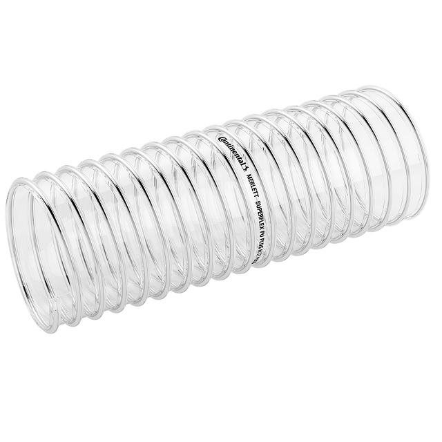 | Vlastnosti | Velmi ohebná hadice s hladkým vnitřním povrchem a vysokou odolností vůči abrazi, olejům, UV paprskům a klimatickým vlivům. Hadice s vysokou mechanickou ochranou. Směr proudění je vyznačen šipkou, směr spirály - levotočivá. |