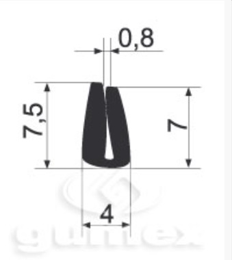 HG profil lemovka U pl.0,8/4x7,5 mm NBR 60Sh černý