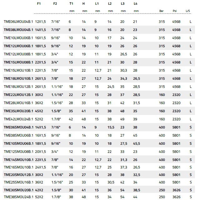 | 3601TD4220U158S | UNF-1.5/8" | 250 | 2x M42x2 | S | 30 | 0,4 | 41 | 1 | ks |