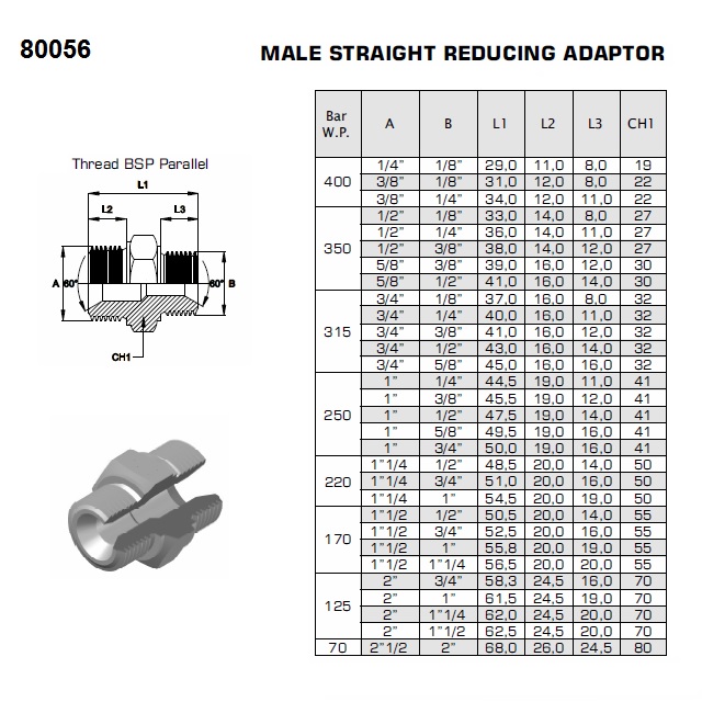 | 3601AD1x34SS | G 1"- G 3/4" | 50 | 250 | 0,36 | 41 | 1 | ks |