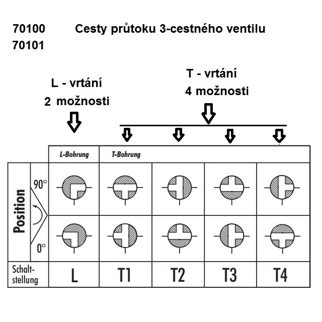 | Zkrácená poznámka | L vrtání umožňuje průtok pouze dvěmi cesty ve tvaru L, páku lze za měnit jiného tvaru |