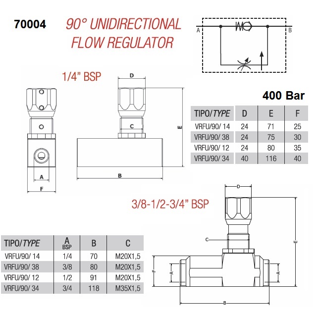| 325030VRFU9014 | 2x G1/4" | 400 | 0,36 | 15 l/min. | ks |
