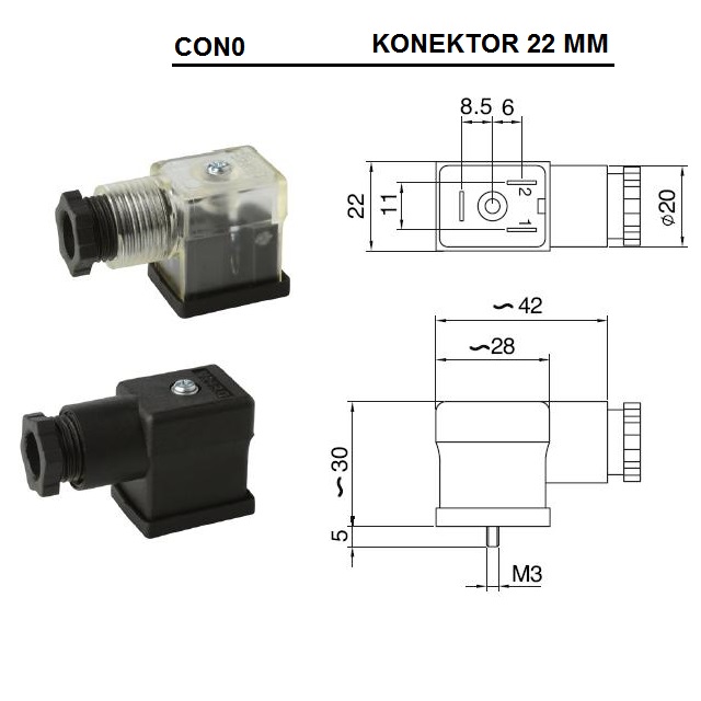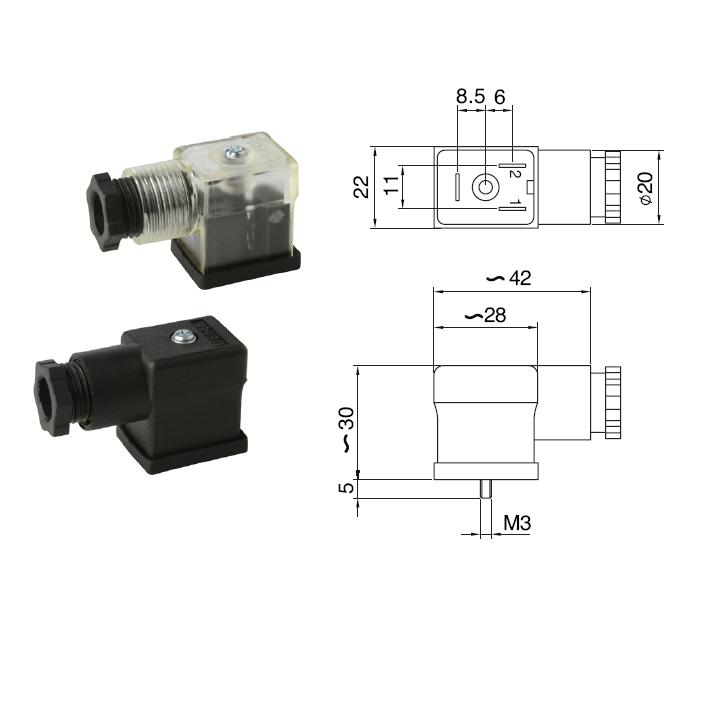| Vlastnosti | Konektor s IP krytím pro cívku ventilů 01V |