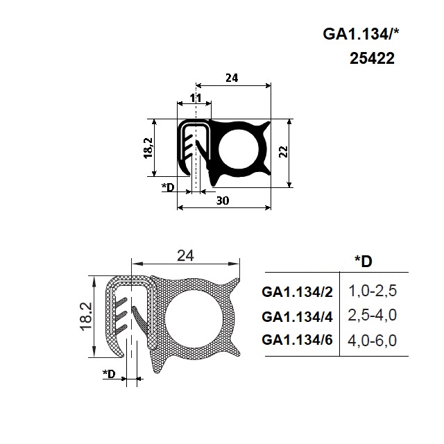 | D.* (mm) | *D 4 - 6 mmm |