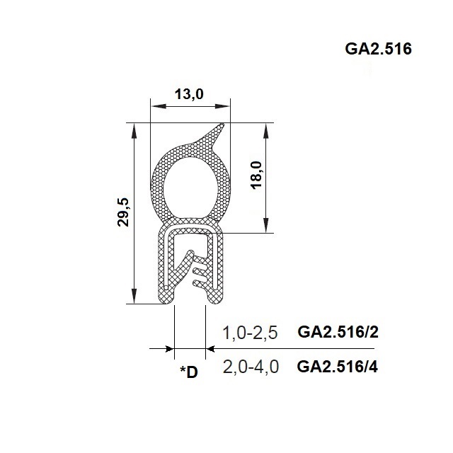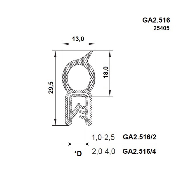 | D.* (mm) | *D 1 - 2,5 mm |