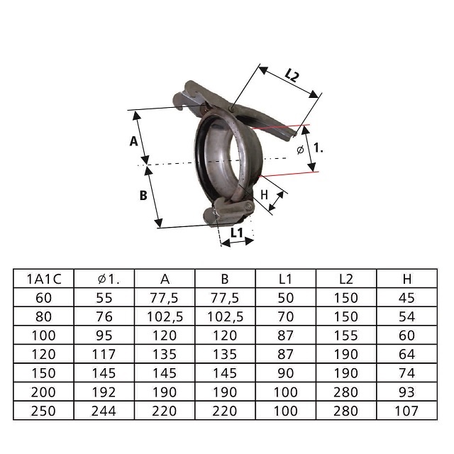 | Kód | Určeno na hadici [mm] | Provozní tlak (bar) | DN (mm) | Druhý průměr (mm) | Hmotnost (kg) | Balení [MJ] | Výška | MJ | Cena / MJ | |
