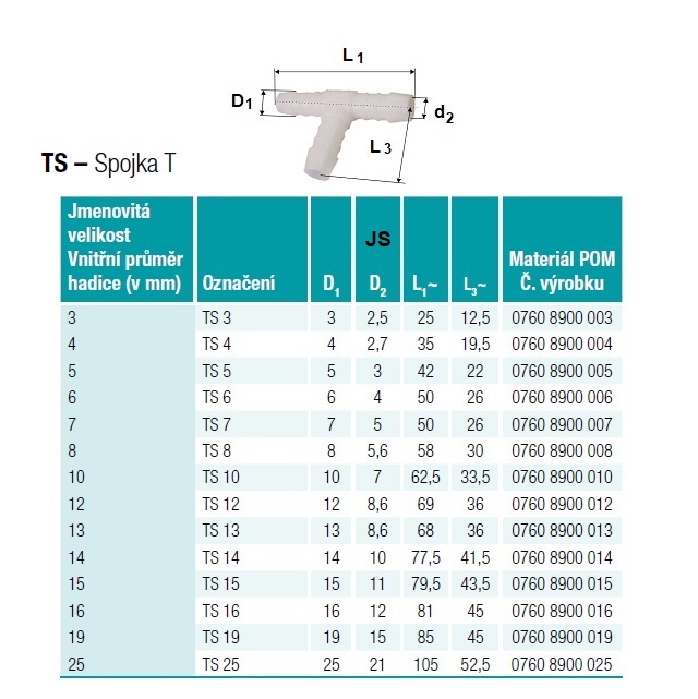 | 3310TS25 | 105 | d=25-25-25 | 2 | 25 | 0,02 | 25 | ks |