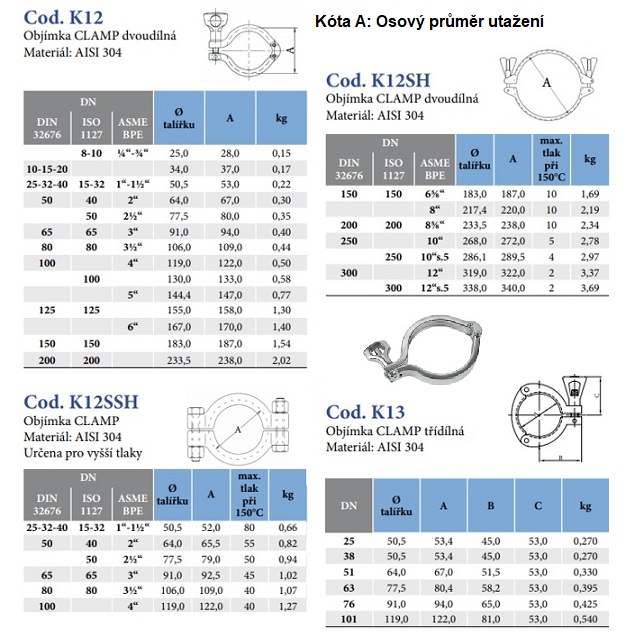 | Kód | Určeno na hadici [mm] | Provozní tlak (bar) | Série | Vstup (otvor) (mm) | D.* (mm) | Hmotnost (kg) | Balení [MJ] | Kóta B | Kóta A | MJ | Cena / MJ | |