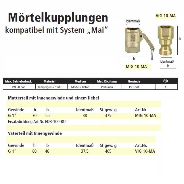 | Použití produktu | Rychlospojky na výrobu a transport betonových, omítacích a maltových směsí. |